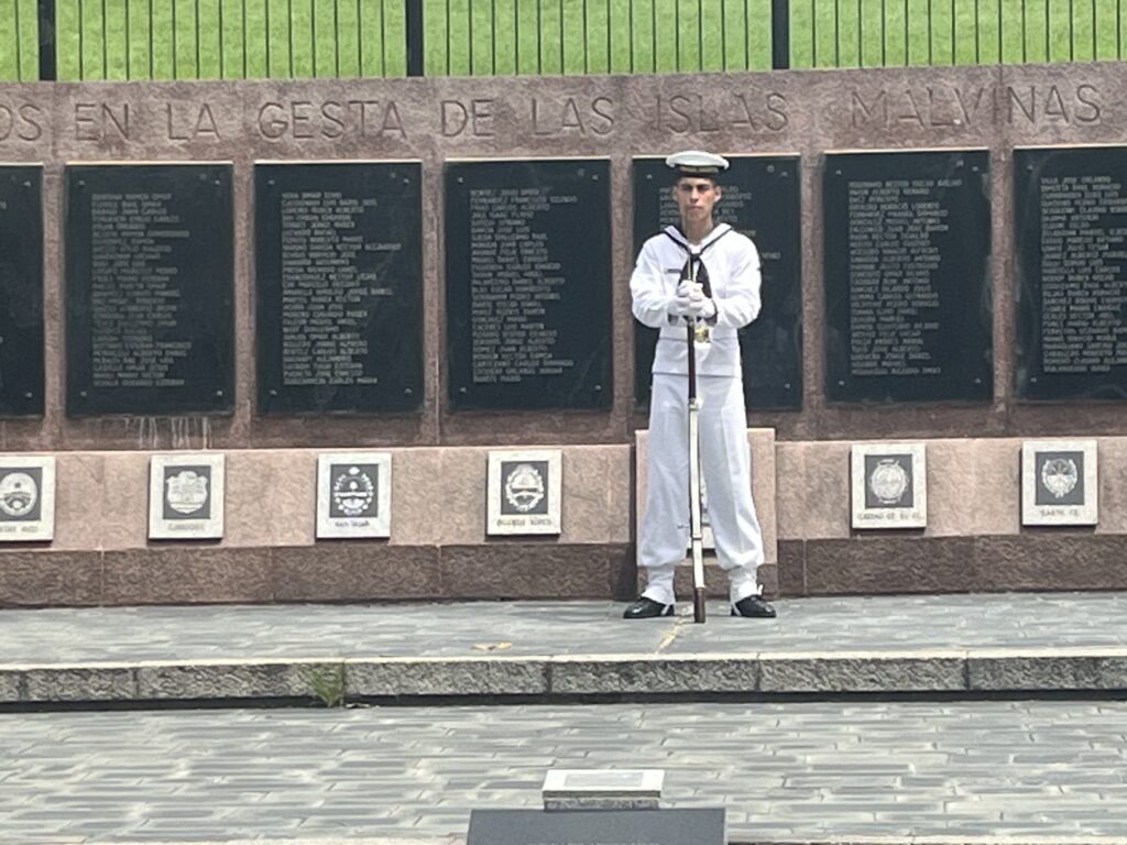 Capsule adventice: Les Îles Falkland appartiennent à l’Angleterre mais sont revendiquées depuis toujours par l’Argentine. En 1982, le gouvernement militaire de l’époque, dans le but de rassembler la population argentine à son mouvement (de terreur) a décidé de prendre les îles. Croyant que ce ne serait qu’une simple « tasse de thé », ils n’avait pas pensé que devant eux, ils avaient Margaret Thatcher, la Dame de Fer, (Première Ministre de l’Angleterre) qui a rapidement riposté en envoyant ses navires de guerre. Devant des soldats peu entraînés, le désastre fut grand pour l’Argentine. Néanmoins, la défaite reste crève-cœur pour les Argentins qui veulent voir ces îles annexées à leur pays. Partout on voit des références à ce souhait.